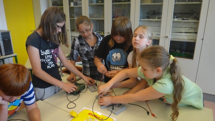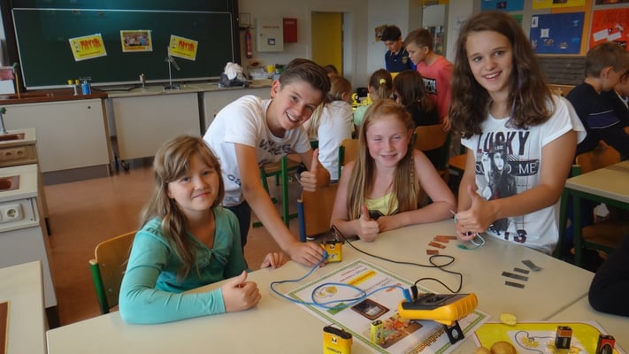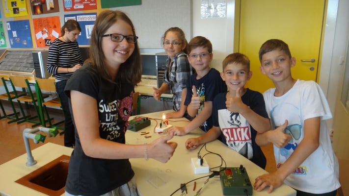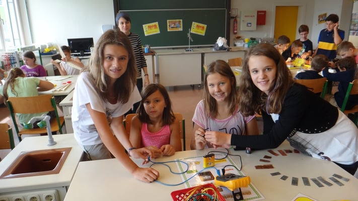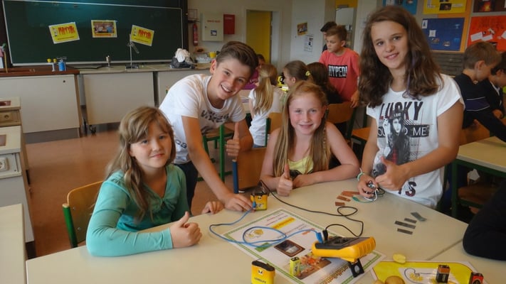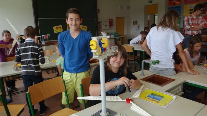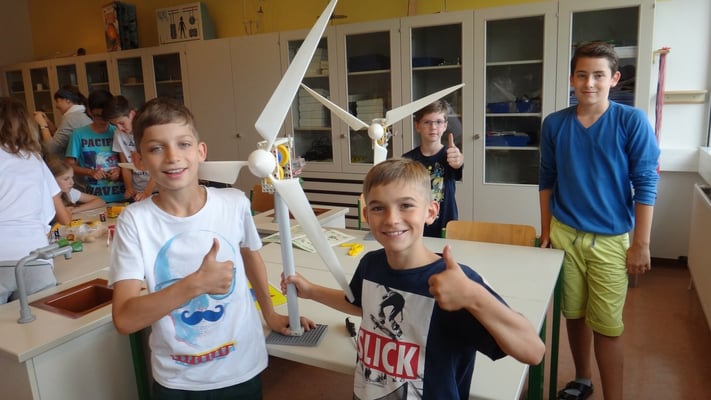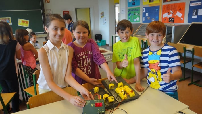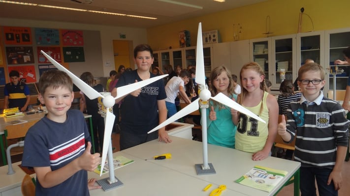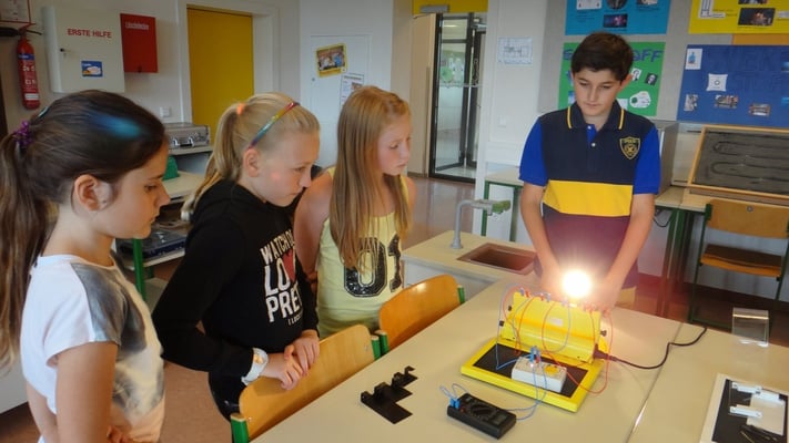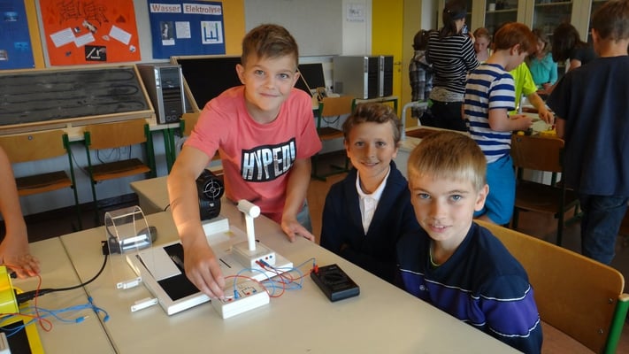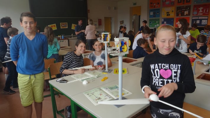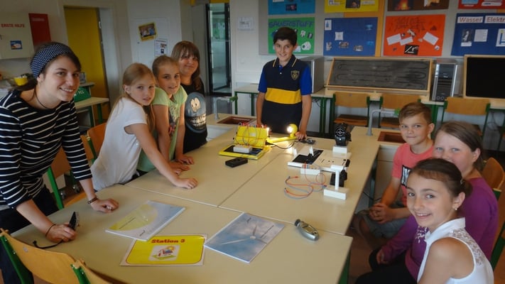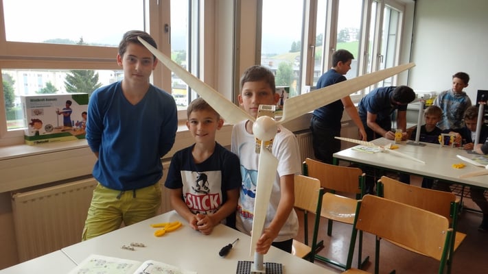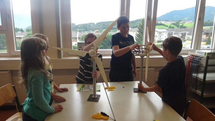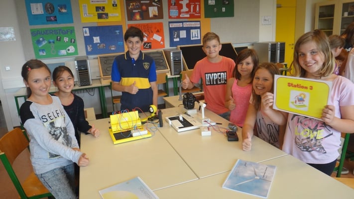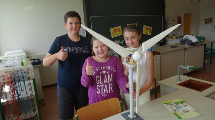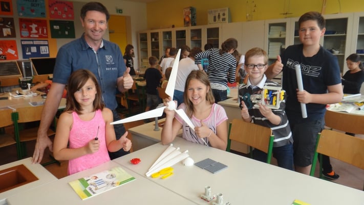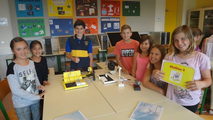 Stationen konnten die Volksschulkinder Spannendes rund um die Grundlagen der Elektrizitätslehre, Solar- und Windenergie erfahren. So wurden Windkraftwerke und