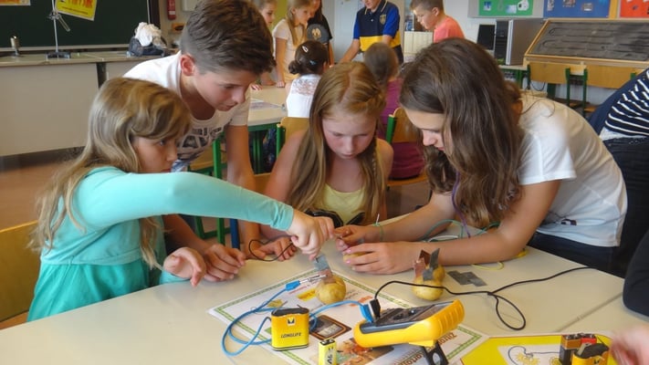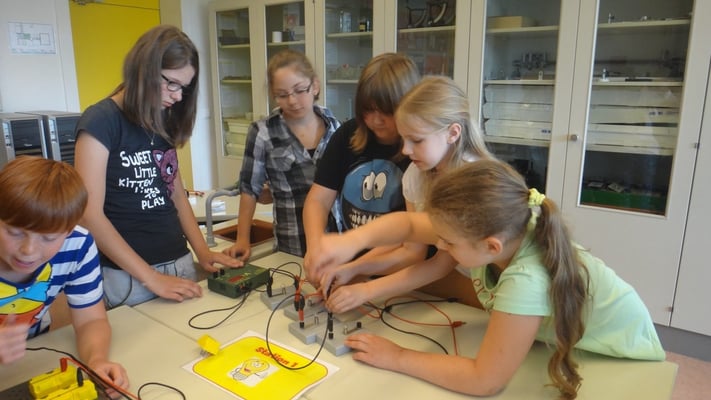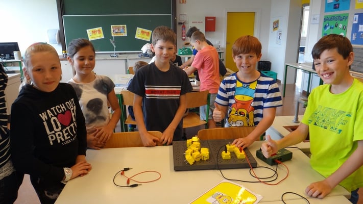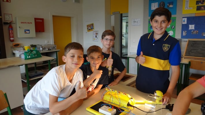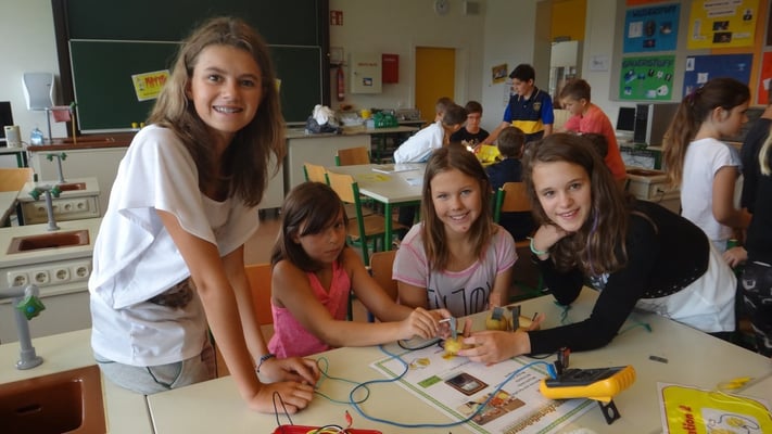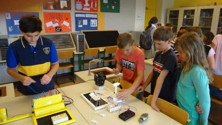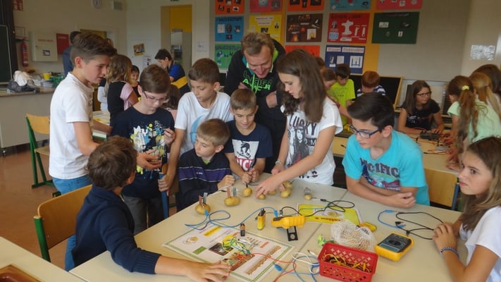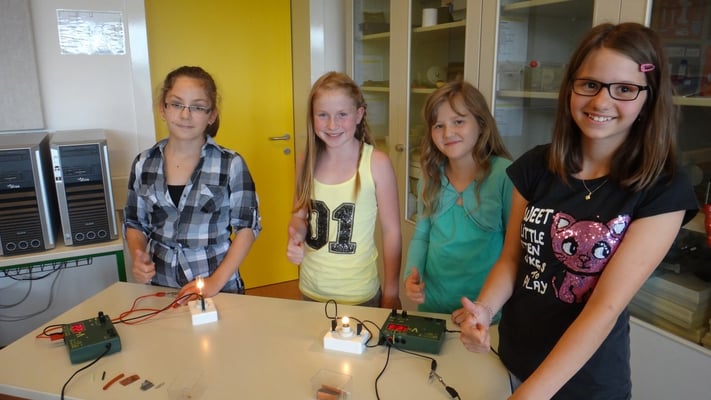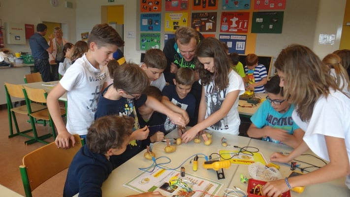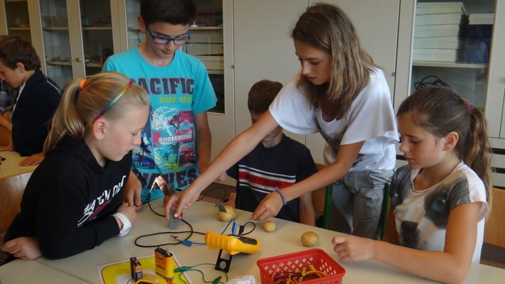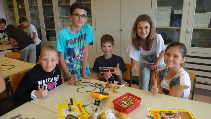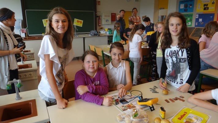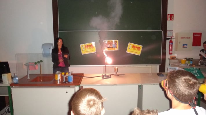 Kartoffelbatterien gebaut und wurde mit Photovoltaik-Anlagen sowie Windtrainern experimentiert. Der Abschlussversuch "Ein Gummibärchen im flammenden Inferno" zeigte, wie viel Energie bei der