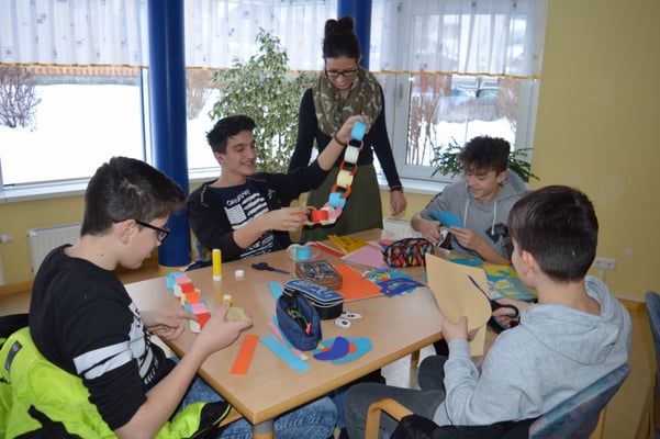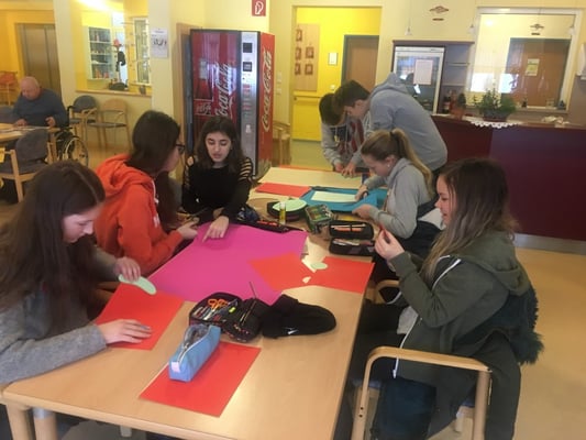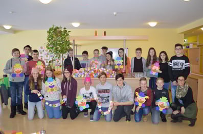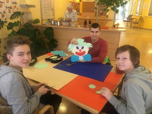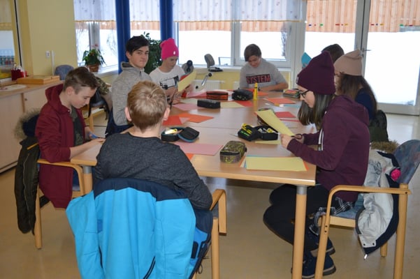 Die Schülerinnen und Schüler der 4B Klasse stechen in diesem Schuljahr durch sehr großen sozialen Einsatz bei ihrem Projekt „Oma-Opa-Enkerl-Zeit” heraus. So schaute die ganze Klasse am 24. Jänner 2018 zum Basteln der Faschingsdekoration für das Seniorenzentrum in der Einrichtung vorbei. Durch diesen Besuch kam nicht nur mehr Farbe in die Einrichtung, die Kinder bringen auch immer Abwechslung und Schwung in das Leben der Bewohnerinnen und Bewohner. Großer Dank gilt auch der tollen Zusammenarbeit zwischen dem Seniorenzentrum und der NMS Gröbming. Daher freuen sich die Schülerinnen und Schüler schon jetzt auf das nächste Wiedersehen.