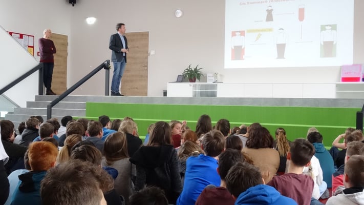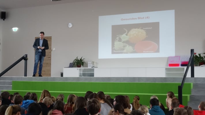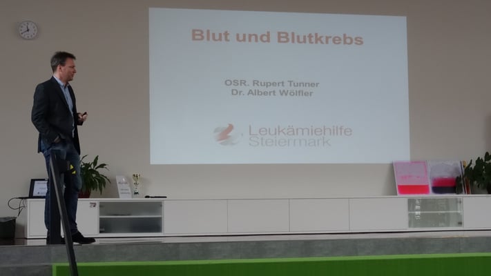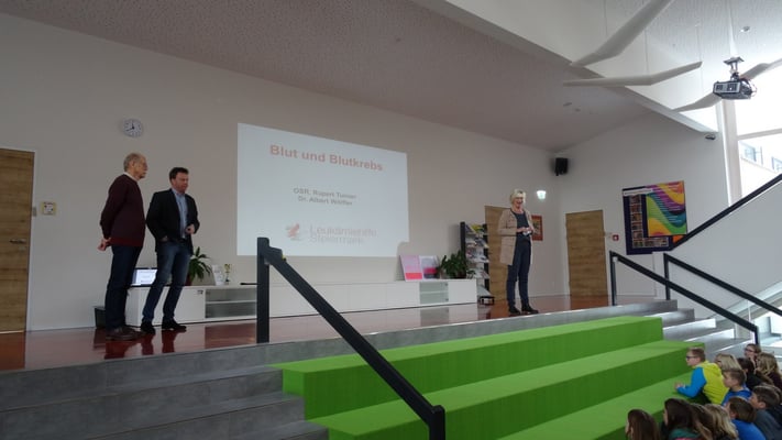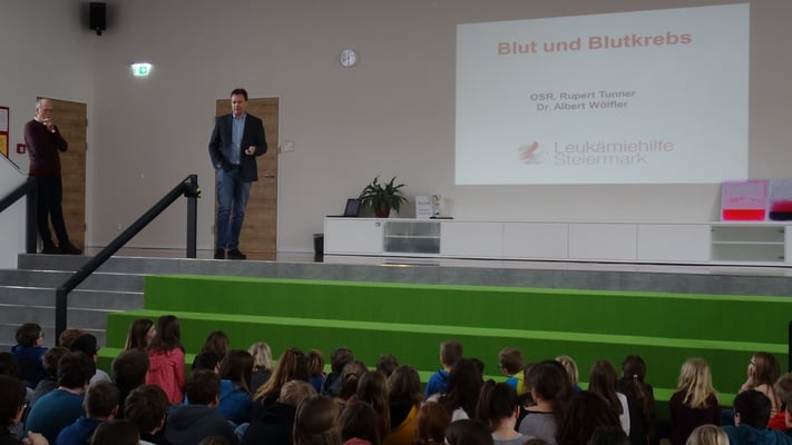 Am Donnerstag, dem 8. Februar, gab es an der NMS-Gröbming einen interessanten Vortrag über Leukämie. Dr. Albert Wölfler vom LKH-Uniklinikum Graz und OSR Rupert Tunner von der Leukämiehilfe Steiermark gaben einen kurzen Einblick über die Symptome und den Verlauf dieser Krankheit. Durch die Forschung konnte die Heilungschance bereits um ein Vielfaches gesteigert werden. Die NMS-Gröbming wird den Erlös ihrer alljährlichen Spendenaktion – sie wird zu Beginn des zweiten Semesters gestartet - der Leukämiehilfe Steiermark zukommen lassen!