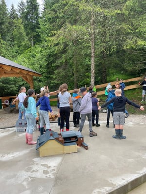 Dort wurde uns mit vielen verschiedenen Aufgaben anhand eines nachgebauten Modells des Walchenbaches die Bedeutung des Waldes vermittelt.