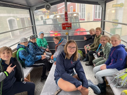 Am 8. Juni reiste die 1a Klasse mit den Lehrern Christian Kanduth und Helen Schwarzkogler nach Öblarn. Dort wurden wir von einem Bummelzug abgeholt und nach einer holprigen Fahrt kamen wir im Walchental beim "Wassererlebnis Öblarn" an.