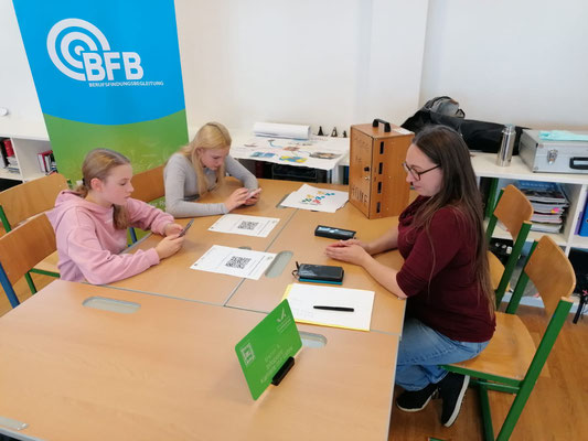 Bei einem zusätzlichen Stand, der von Berufsfindungsbegleiterin Kathrin-Maria Härtel betreut wurde, durften sie mit ihrem Handy auch noch einen Aufnahmetest simulieren, bei dem unsere Schüler zum Teil sehr gute Leistungen erbrachten. Ein Online-Kahoot-Rätsel mit Gewinnchancen für alle rundet das Angebot ab.